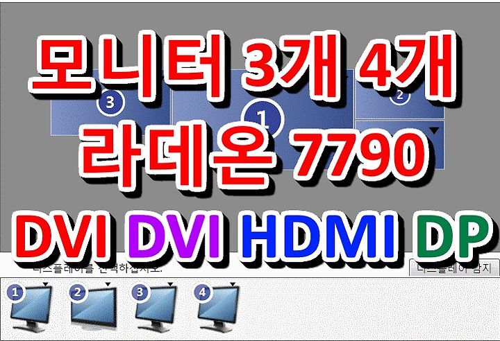 모니터 3개 4개 연결 방법 AMD 라데온 7790 Triple monitor Quad DVI DVI DP HDMI