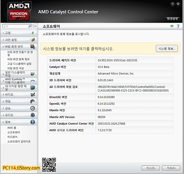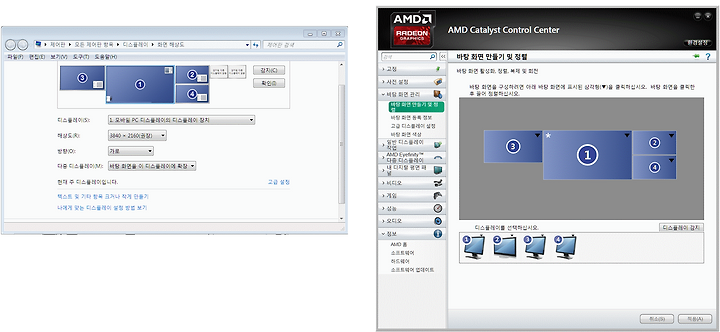 [윈도우즈 그래픽 제어판과 라데온 카탈에 나온 모니터 정보][윈도우즈 제어판에는 모니터가 연결되지않은 내장그래픽 정보도 표시됨]