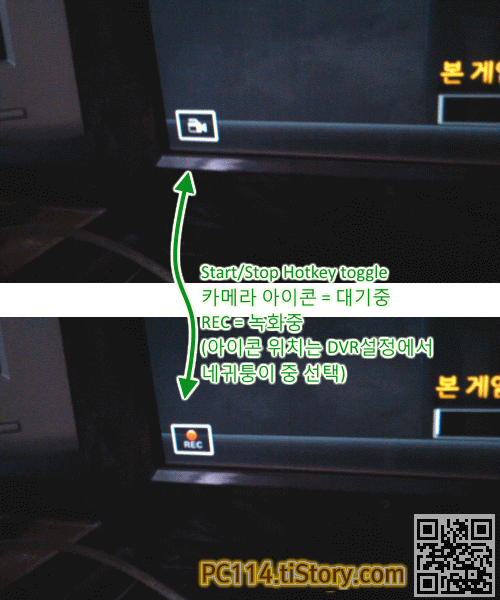 6. 게임 화면에 DVR 아이콘 확인. 녹화 단축키를 누르면 녹화/정지